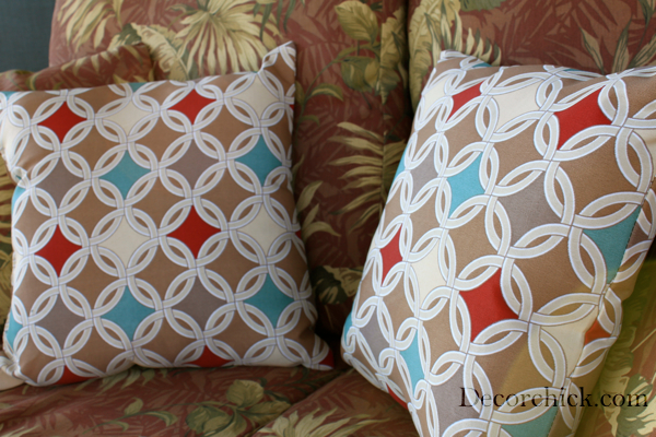 I put 2 on the loveseat and 1 in each chair. Yes, I still need new patio covers but that will come sometime. I figured these new pillows would pave the way for the new covers I’ll eventually pick out. :)