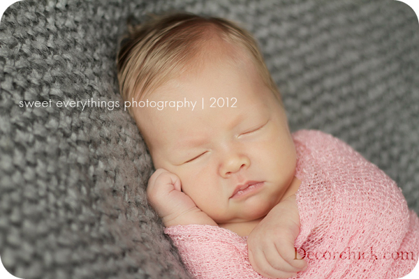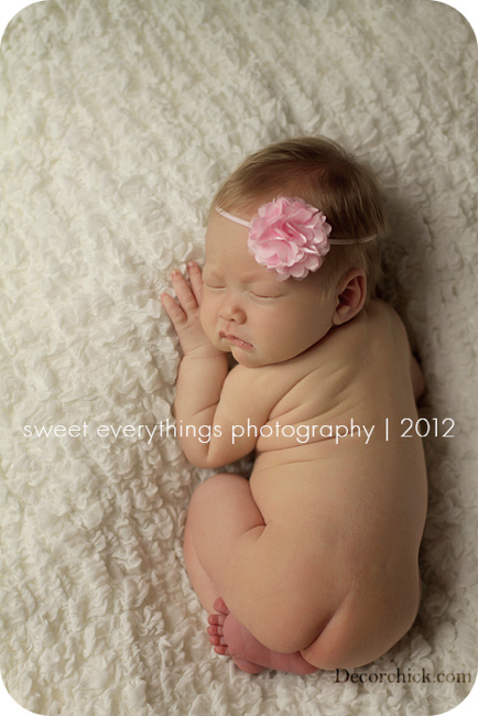 Please forgive me for these crazy baby posts (not really), but I just HAVE to share this one with you all.  Blogging is about pretty pictures right? Well these are definitely pretty. :)  We decided and were fortunate enough to hire a photographer to do some newborn shots of Ellie, and wow oh wow I’m so glad we did.  We didn’t hire one to do Emma’s newborn shots and I’m so sad about that now looking back.  I thought we could just take some good ones with our “fancy” camera, which we did, but really there is nothing like having a professional take them.  This is their expertise after all.  Yes you can get some good ones of course doing it yourself, but once you have the ones the pros do, there’s really no comparison.