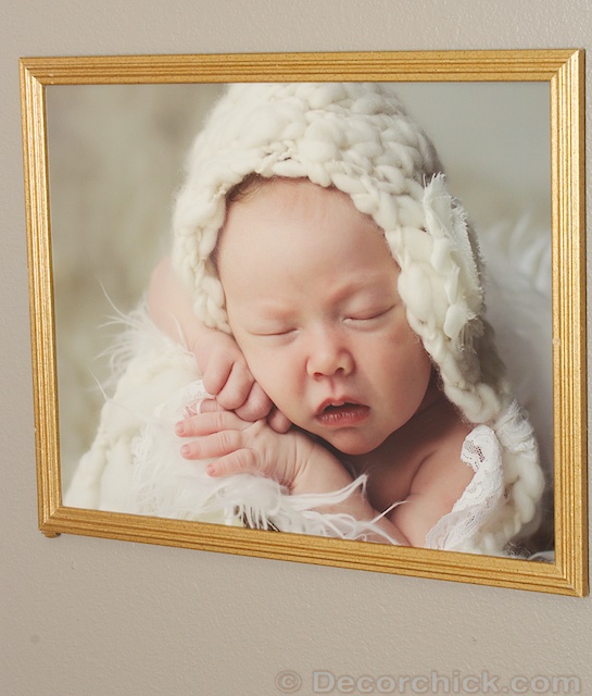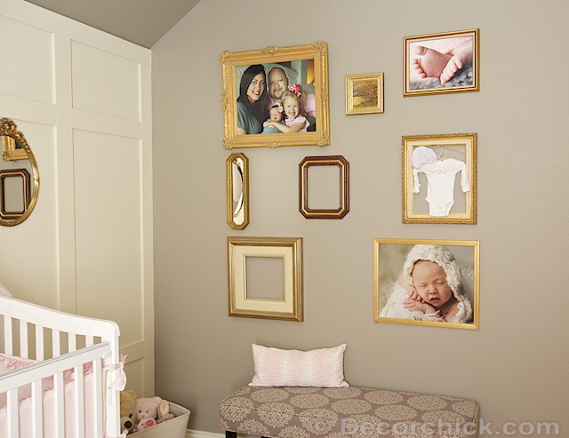 There is still plenty of space to add to it in the future, but the gallery wall is one of my favorite things in here. The old thrifted brass frames with the sweet newborn pics inside…I could stare at all day. And I eyeballed the gallery wall and got it right on my first try. BAM!