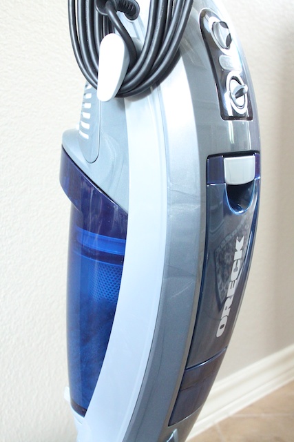 It’s a full-powered bagless vacuum and steam mop that is portable, lightweight, and incredibly easy to use. It is also safe for all floor surfaces including wood floors. I’ve never had an Oreck vacuum cleaner before but have always heard amazing things about them. I am a slight geek about new cleaning products so I was pretty giddy to review this. And the VersaVac did not disappoint!