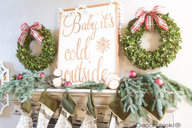 Now on to the mantel!! I love how it turned out this year with all of the greenery!