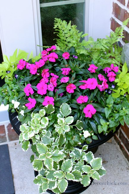 Love it – you did a great job – your entryway is so welcoming and pretty! I also love using potato vine in containers – such a neat color and shows off the flowers nicely!