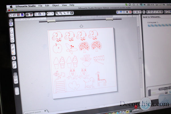 Then I used my Silhouette machine and cut the vinyl letters and my images out and put on my tiles. Please know this part will be very time consuming. :)