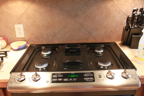 Okay, I saved my favorite for last. My oven. Gosh, how embarrassing this is. I know it’s horrific. I really didn’t know how bad the door was. But the positive side is that it shows you that I actually cook right? :)