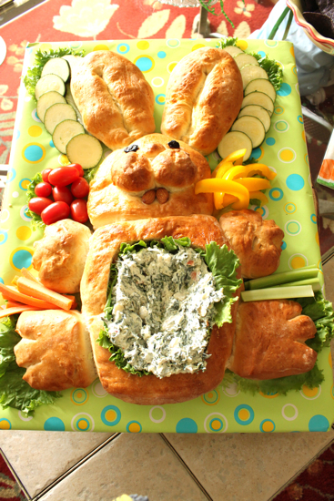 How cute is that??  She baked some bread and made it the shape of a bunny and filled the middle with some spinach artichoke dip.  I know there were many more details than that, but I just don’t know them all.  But it was so yummy.