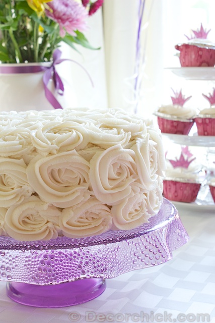 I of course had my mom make another beautiful Rosette cake, this time in white so it could go on her pretty purple cake plate.