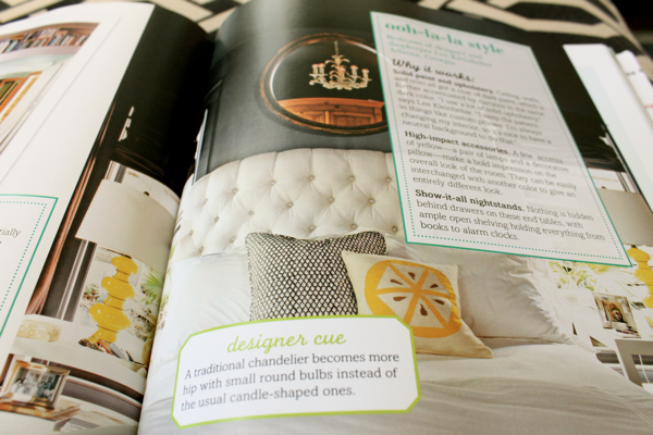 What I love most about the book is that after all of the different looks or room transformations are listed, they then give you the tips and tools necessary to recreate the look.  And budget friendly, to top it off!
