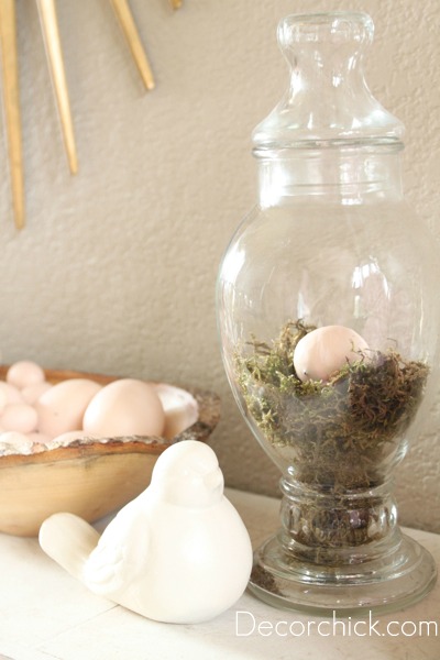 […] idea of putting the moss inside a glass vase or jar with an egg on top from decorchick.  Click here to check out the rest of her Spring […]