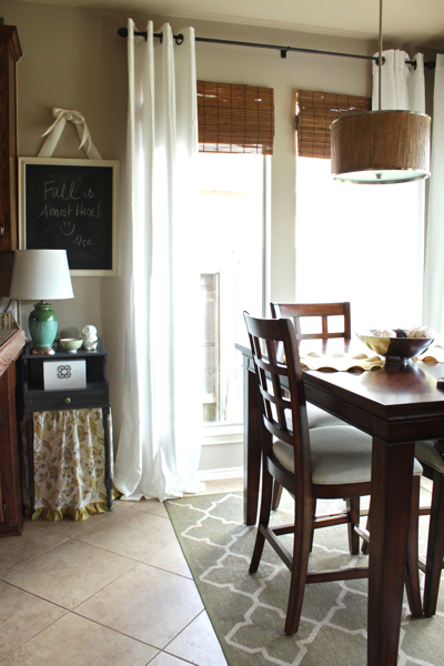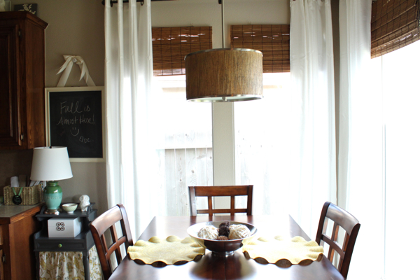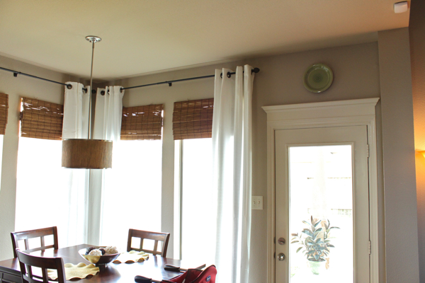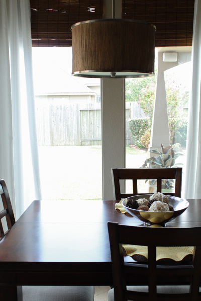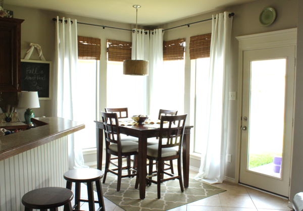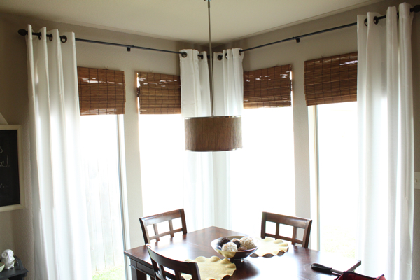 I love it, Emily! I have been lighting things up with white curtains around here as well. Iove the bamboo texture with the white curtains. What a pretty spot to gather for meals.