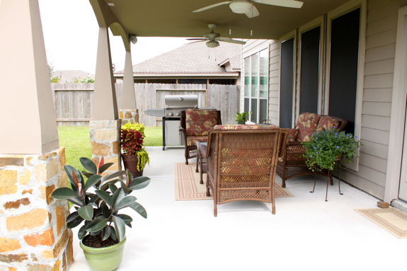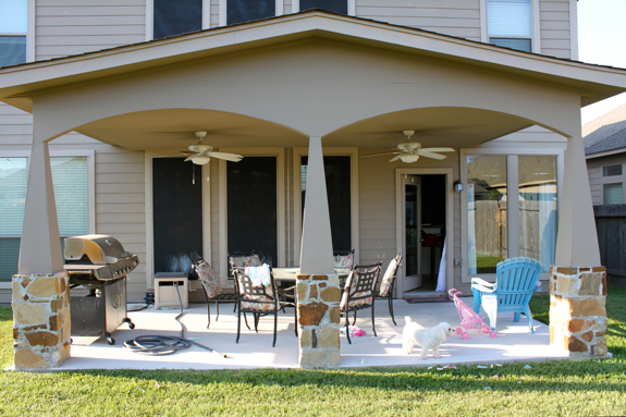 I don’t think I’ve ever shown you all our patio, and we actually have a nice one! We had it added on about 2 years ago. Having a patio is pretty much a must in Texas, and when we bought our home all that was there was a tiny little square piece of concrete, and a little bitty overhang that did nothing at all. After the patio was built it was SO nice to have. But there was a problem and it was this.