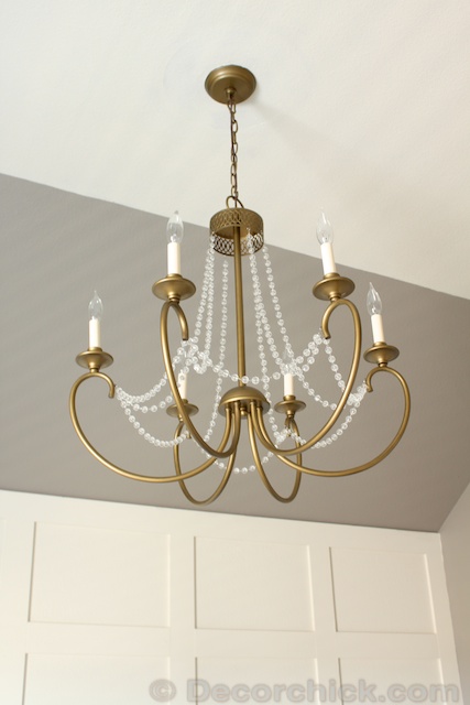 If you’re wondering, the paint color in that picture above looks really dark. I assure you it’s not that dark. I just had to manipulate things so I could get a decent shot of the chandelier with the lights on.  The accurate color of the paint is the first picture and yes, it really is still the perfect warm smokey grey paint color. :)  I know some of you have bought it and I’d love to hear how you like it!