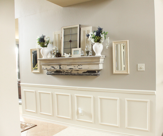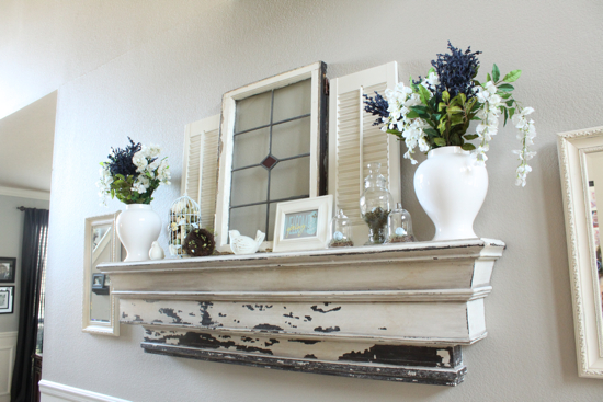 Love the shabby chic quality of the mantle, and the new paint is awesome!…………………………..Bonnie