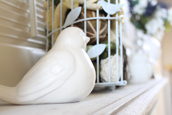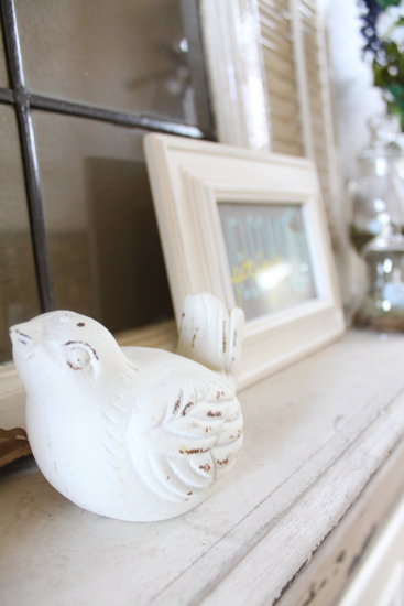 Your mantel is beautiful! I really love the window/old shutters you have in the middle. :) I’m going through a “bird phase” right now, too. What better way to decorate for spring than with little birdies? Can’t wait to see your new floors!