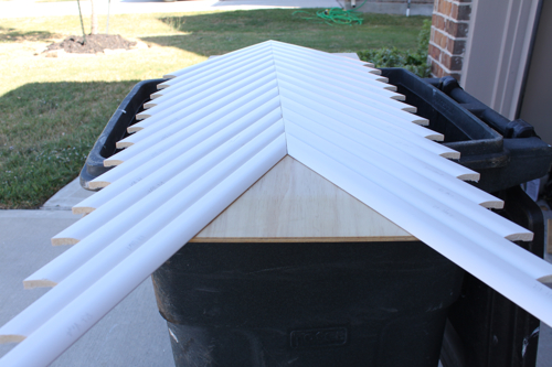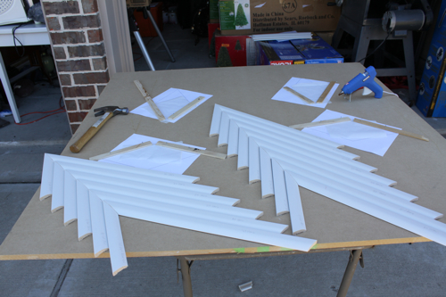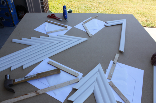 Then my Dad just whipped up this template thing so we could glue each piece together at the right angle, and on a flat surface. I know, sounds confusing.