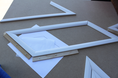 We wrote on each piece with a pencil if it was for the left or right wall, and if it was a horizontal piece or vertical piece.
