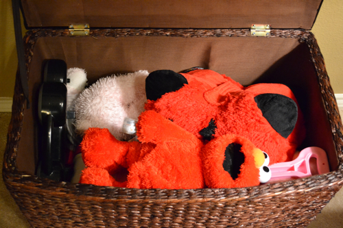 it doesn’t mean we need to buy another trunk to store more toys.  It means we need to rotate them out and hide a few in the closet. Then that Elmo that is a few months old will seem like a brand new toy to your little one. Works like a charm. :)  But I don’t think I could do that with Elmo. She loves her “Mo-Mo’s.”  I’m a sucker, I know.
