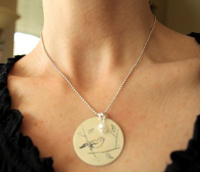 I just love it and was extremely giddy when it came in the mail!  This necklace is the sweet and simple birdie necklace. Isn’t it, well, so sweet?!  Thank you Lisa, you rock!