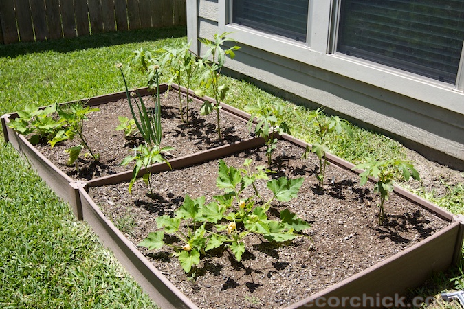 Well last year’s garden was so fun to have, that my mom helped me again with this one. We kept everything mostly the same this year as far as veggies go, just used a different soil. I’m not too sure on this soil though, it was one our nursery highly recommended, but it’s not as moisture rich as the one we used last year.