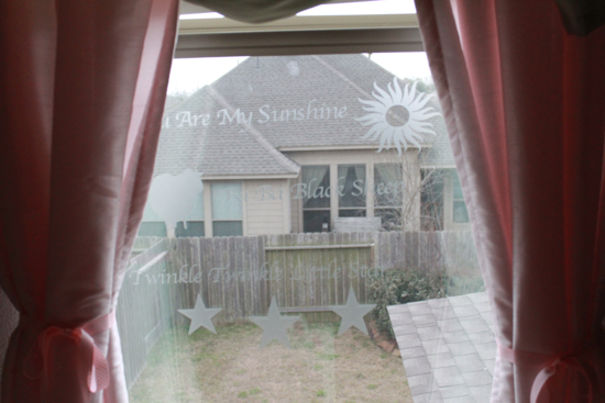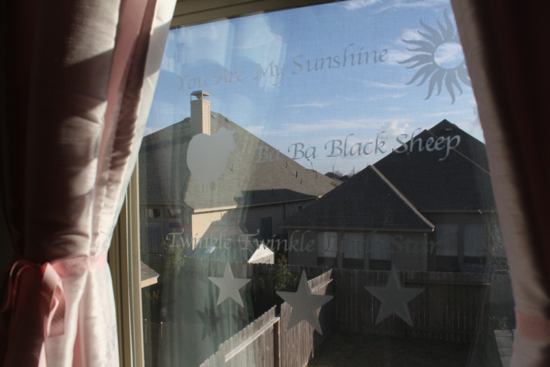 Your daughter is precious…..and the window project has inspired me! I got a Silhouette for Christmas, and have yet to download the software to my computer(shame, shame)—your step-by-step makes it so simple, I can’t wait to get going!—I would like to do a version of your window project for my grandson’s room~~he whimpers for songs, too ;-)