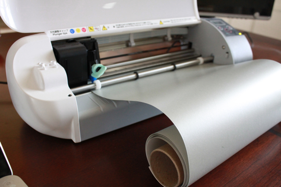 *TIP – I wouldn’t have known this if Jen hadn’t told me a while back, but when you print any vinyl on the Silhouette, you don’t need to use any carrier sheet. All you have to do is load the vinyl roll as-is into your machine. Like this: