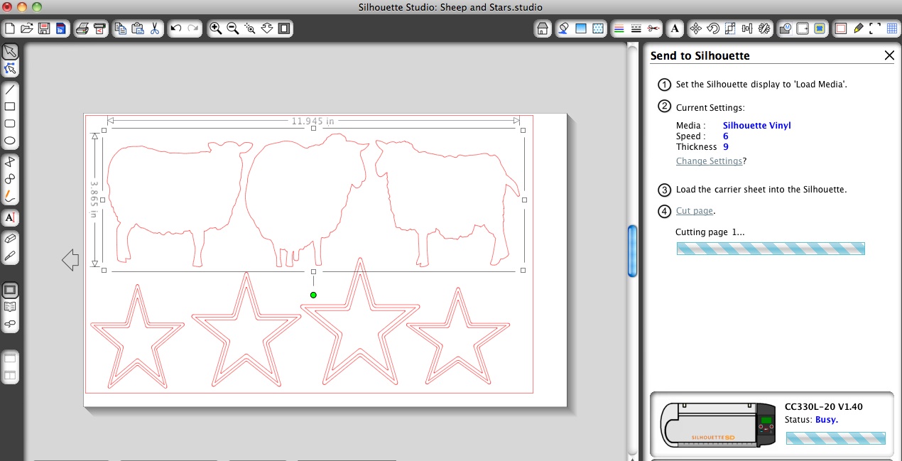 Then I did the same thing as above for my images of the sun, sheep, and stars which were downloaded from Silhouette’s online store, and printed them out.