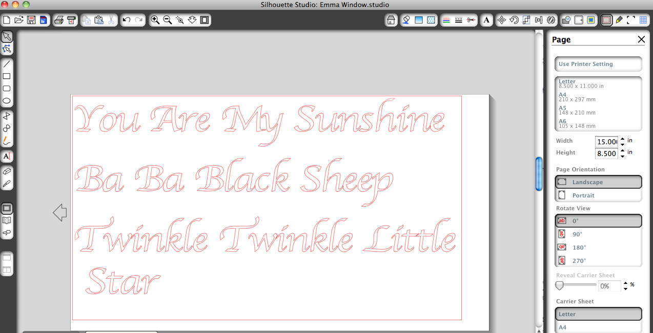 So I had this bright idea to get a little crafty this past weekend and put a few of her favorite songs on her window. And what better way to do that? Of course with my Silhouette!