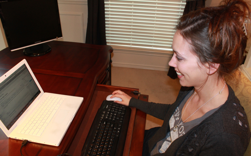 I love your home office/”girl cave” Your desk almost looks like the one my DH has that is solid cherry by Hooker..It is so heavy, even the movers complained about having to move it and i think it took about 4 strong moving guys. What kind of laptop is that, never seen a white one. So you use your keyboard instead of the one on the laptop? Where do you have your printer hooked up? I’ve been thinking about buying a laptop but know nothing about them. I’m not computer savy and I use my computer for emails, typing letters and etc. I don’t know how to do much with it. Need to find somebody that can teach me and come to the house and sit down beside me and in layman’s language. I love the bookcase with lights behind the desk and the walls(moldings) That really adds to the elegance of the room.