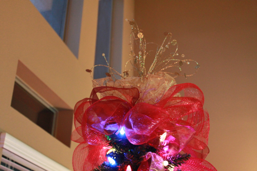 How fun! I don’t have a very large bedroom, but I do have a little tree I was toying with putting on a table in there just cause I love the twinkling lights. :) (I ended up putting it out on the landing where we’ll actually see it more than once a day since I don’t hang out in my bedroom during the day at all.) OH – and those bows bring back memories. I used to set up all the tree displays at Hobby Lobby back in the day (ALL OF THEM IN OUR DISTRICT) and we made the huge bows to top all of them. Lots of tree fluffing. Lots of bows. :)