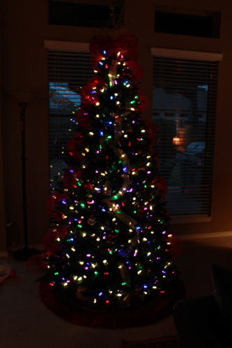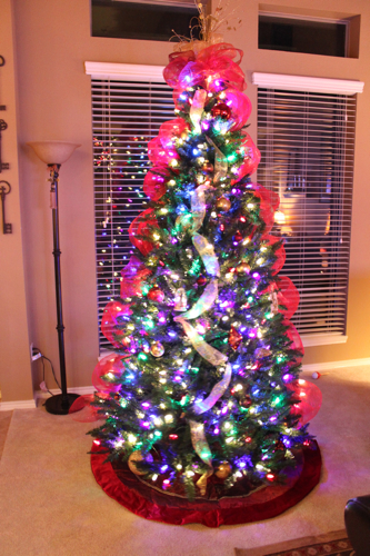 I did get fancy and used a throw blanket for the tree skirt though.