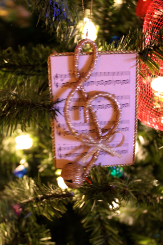 Wow – rotating tree, changing lights! Puts mine to shame. :-) That music ornament is so pretty, and I do think Rachael should do a tree topper video.